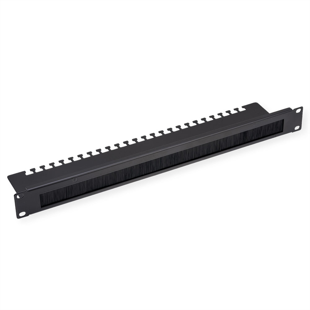 19-Zoll-Kabeldurchführung 1 HE, mit Bürstendichtung & Kabelträgerplatte, schwarz