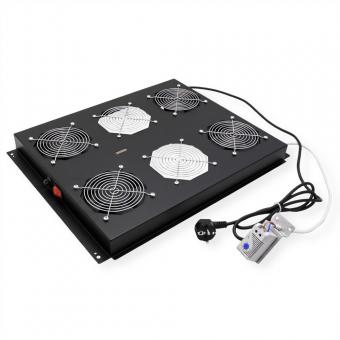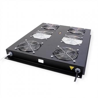 19-Zoll Dachlüftereinheit 4 Lüfter, Thermostat für Serverschrank schwarz