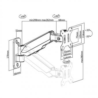 LCD-Arm, Wandmontage, 4 Gelenke, schwarz