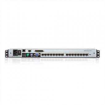 Der KVM-Switch KL1516AiM ist ein LCD-KVM-Switch in Doppelschienen-Ausführung, der es ermöglicht, bis zu 16 Computer von einer einzigen Konsole (Tastatur, Monitor und Maus) aus zu steuern. Er besitzt einen eingebauten 43cm LCD-Bildschirm, eine vollwertige Tastatur und Touchpad und ist in einem 1U-Einschub für 19-Zoll-Schränke in einem ausziehbaren Gehäuse montiert.Der LCD-Monitor und das Tastaturmodul mit Touchpad lassen sich unabhängig voneinander aus dem Schrank herausziehen. Um mehr Platz im Rechenzentrum zu schaffen, kann das Tastaturmodul mit Touchpad eingeschoben werden, während der schlanke LCD-Bildschirm zur Überwachung der Computer ausgeklappt und flach anliegend am Schrank bleibt - so kann die Aktivität der Computer bequem überwacht werden.Der KL1516Ai gibt lokalen und entfernten Sysops die Möglichkeit, über ein IP-Netzwerk mehrere Computer zu überwachen und zu steuern. Weil er das TCP/IP-Protokoll zur Kommunikation verwendet, kann der KL1516Ai von einem beliebigen Computer im LAN, WAN oder Internet bedient werden - unabhängig davon, ob er im selben Raum, am anderen Ende der Straße oder auf einem anderen Kontinent steht.