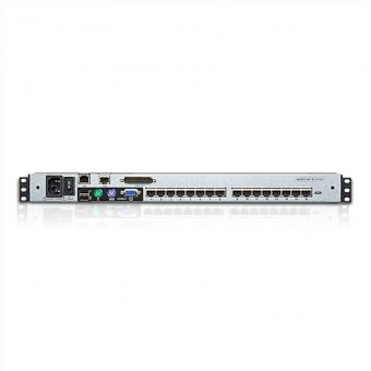Der KVM-Switch KL1516AiN ist ein LCD-KVM-Switch in Doppelschienen-Ausführung, der es ermöglicht, bis zu 16 Computer von einer einzigen Konsole (Tastatur, Monitor und Maus) aus zu steuern. Er besitzt einen eingebauten 48cm LCD-Bildschirm, eine vollwertige Tastatur und Touchpad und ist in einem 1U-Einschub für 19-Zoll-Schränke in einem ausziehbaren Gehäuse montiert.Der LCD-Monitor und das Tastaturmodul mit Touchpad lassen sich unabhängig voneinander aus dem Schrank herausziehen. Um mehr Platz im Rechenzentrum zu schaffen, kann das Tastaturmodul mit Touchpad eingeschoben werden, während der schlanke LCD-Bildschirm zur Überwachung der Computer ausgeklappt und flach anliegend am Schrank bleibt - so kann die Aktivität der Computer bequem überwacht werden.Der KL1516Ai gibt lokalen und entfernten Sysops die Möglichkeit, über ein IP-Netzwerk mehrere Computer zu überwachen und zu steuern. Weil er das TCP/IP-Protokoll zur Kommunikation verwendet, kann der KL1516Ai von einem beliebigen Computer im LAN, WAN oder Internet bedient werden - unabhängig davon, ob er im selben Raum, am anderen Ende der Straße oder auf einem anderen Kontinent steht.