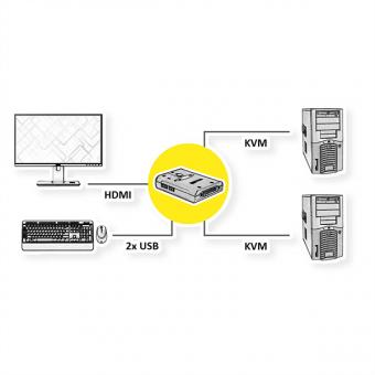 KVM Switch 'Star', 1 User, 2 PCs, HDMI, USB