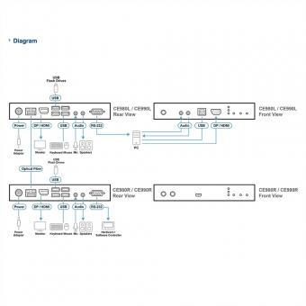 CE980 USB True 4K DisplayPort/HDMI Optical KVM Extender