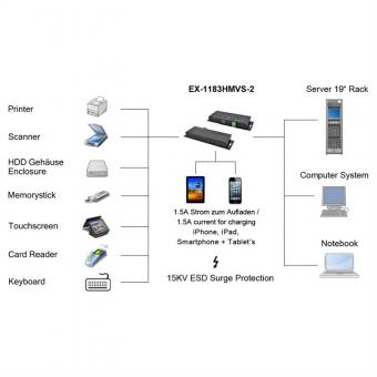 16-Port USB 3.2 Gen1 Managed Metall HUB, mit 15KV ESD ÜS, EX-1526HMVS