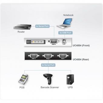 UC4854, 4-Port USB-Serial RS-422/485 Hub