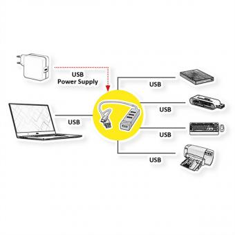 USB 2.0 Notebook Hub, 4 Ports, Typ A+C Anschlusskabel