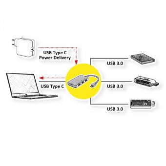 USB 3.2 Gen 1 Hub, 3-fach, Typ C Anschlusskabel (PD+Data)