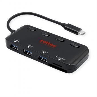 USB 3.2 Gen 1 Hub, 3fach, Typ C Anschlusskabel, mit CardReader, Ports ein