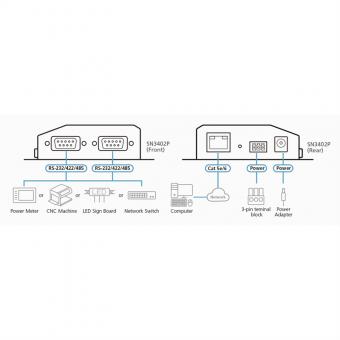 SN3402P 2-Port RS-232/422/485 Secure Device Server mit PoE