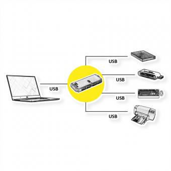 USB 3.0 Hub, USB-A Anschluss, 4x USB-A Ports (3x USB 2.0 + 1x USB 3.2 Gen1)