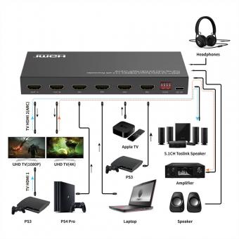 4K HDMI Matrix Switch, 4 x 2, mit Fernbedienung