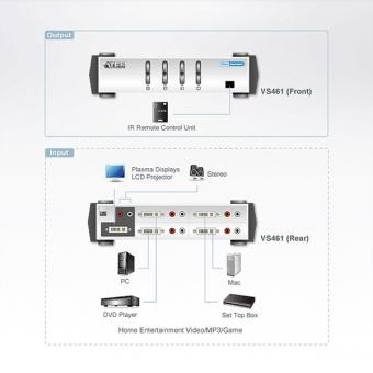 Grafik Switch, 4 Ports, DVI- Audio/Video, mit Infrarot Fernbedienung