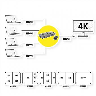 HDMI 4x1 QUAD Multi-Viewer Switch, nahtlose Umschaltung