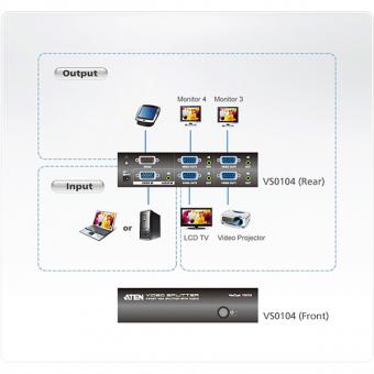 VS0104, VGA Video-Splitter, 450MHz, Audio, RS232, 4-fach