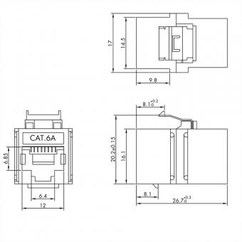 RJ-45 Kupplung, Keystone, geschirmt, Kat.6A (Class EA), kurze Ausführung, silberfarben