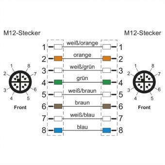 Verbindungsleitung M12 ST-M12 ST, 8-pol X-kodiert, gerade-gerade, Schleppkette, 5m