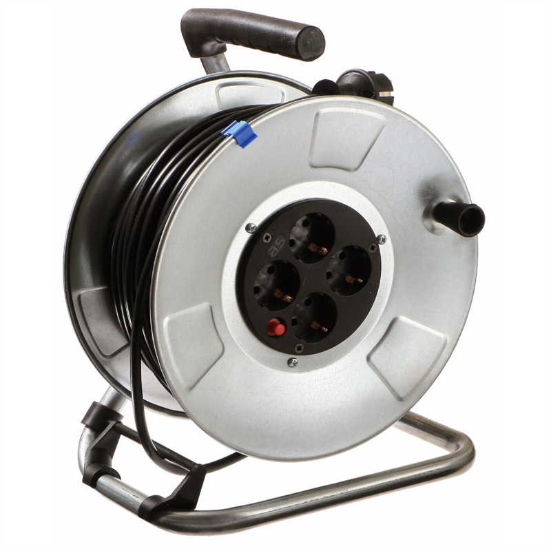 Stahlblechkabeltrommel 4-f. 25m, H05VV-F 3G1,5mm, IP21