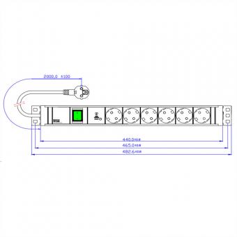 19-Zoll 1,5HE 6xCEE7/3 1xSchalter 1xSPD-Plus 2,0m CEE7/7