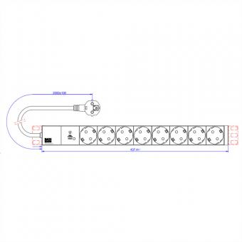 19-Zoll 1HE 8xCEE7/3 RAL7035 1xSPD-Plus 2,0m CEE7/7