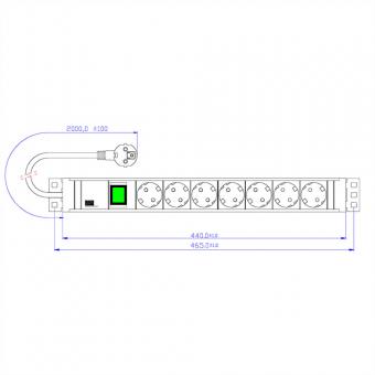 19-Zoll PVC 7xCEE7/3 1xSchalter Strom 2,0m CEE7/7