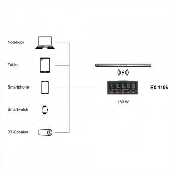 EXSYS EX-1106 Multiport High Power Charger mit QI 15W und USB-C PD mit max. 160W