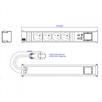 CONI 4xUTE 1xUSB A/C 22W 1xCM 0,2m GST18 RAL9010