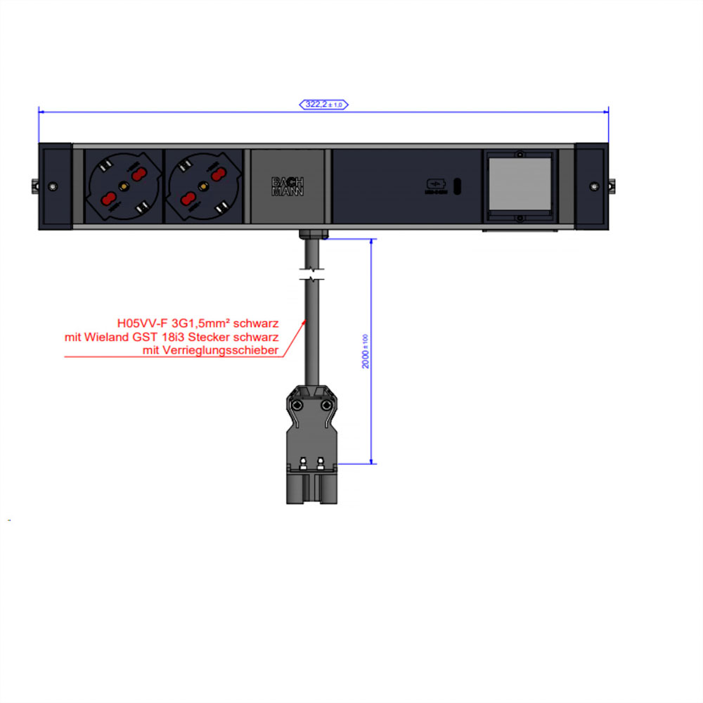 DESK RAIL 2xP40 1xUSB C 60W, 1xCM 2,0m GST18 Italien