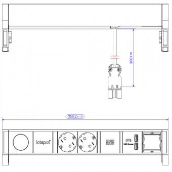 DESK2 1xIOTspot 2xSchutzkontakt, USB Charger 1xABD 0,2m GST18,sw