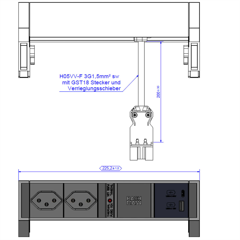 DESK2 2xCH 90° 1xUSB A/C 22W, 0,2m GST18 RAL9005 Schweiz