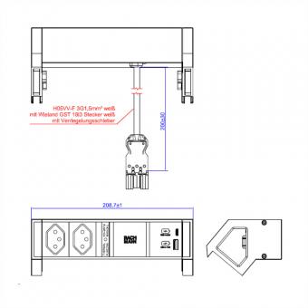 DESK2 2xCH T13 1xUSB A/C 22W 0,2m GST18 RAL9010