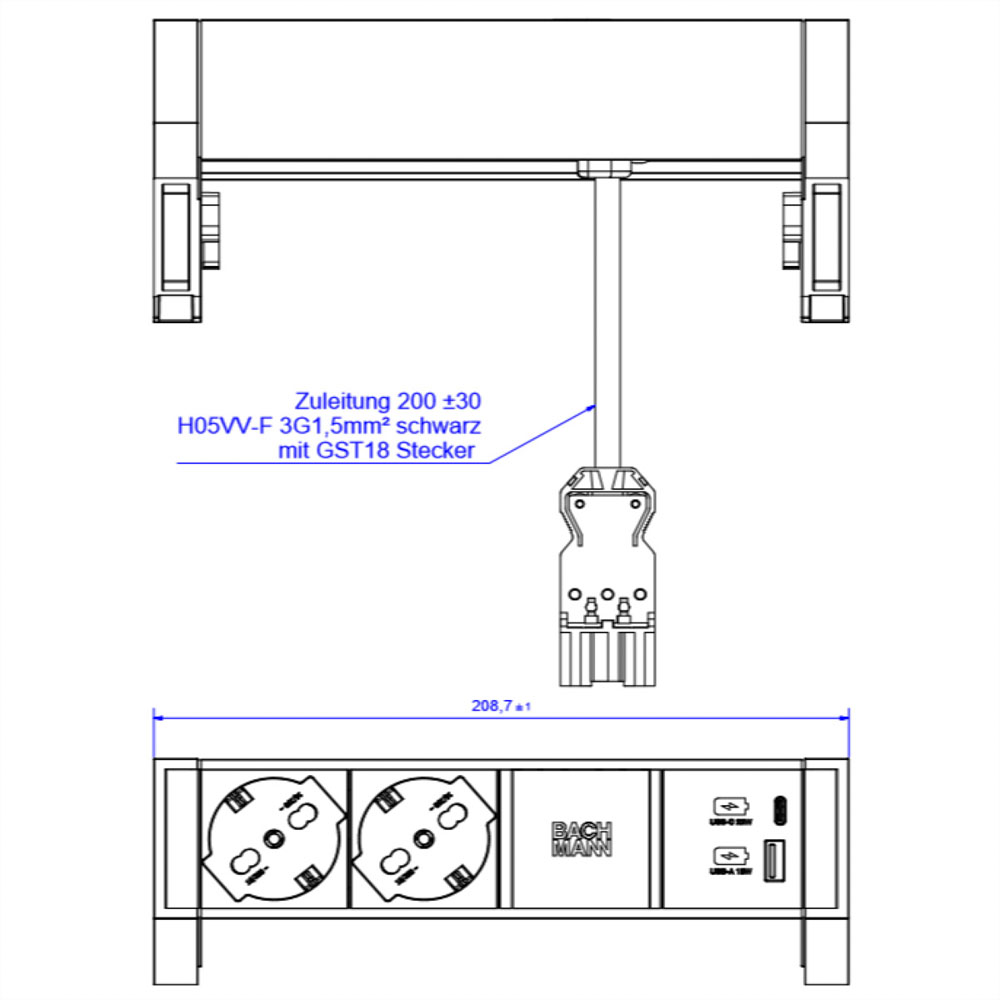 DESK2 2xP40 1xUSB A/C 22W, 0,2m GST18 RAL9010 Italien