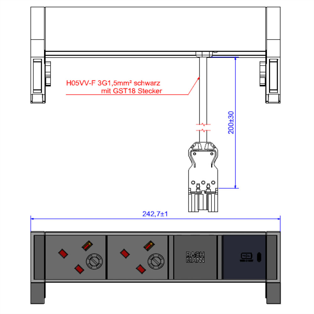 DESK2 2xUK 1xUSB C 30W, 0,2m GST18 RAL9005 Großbritannien