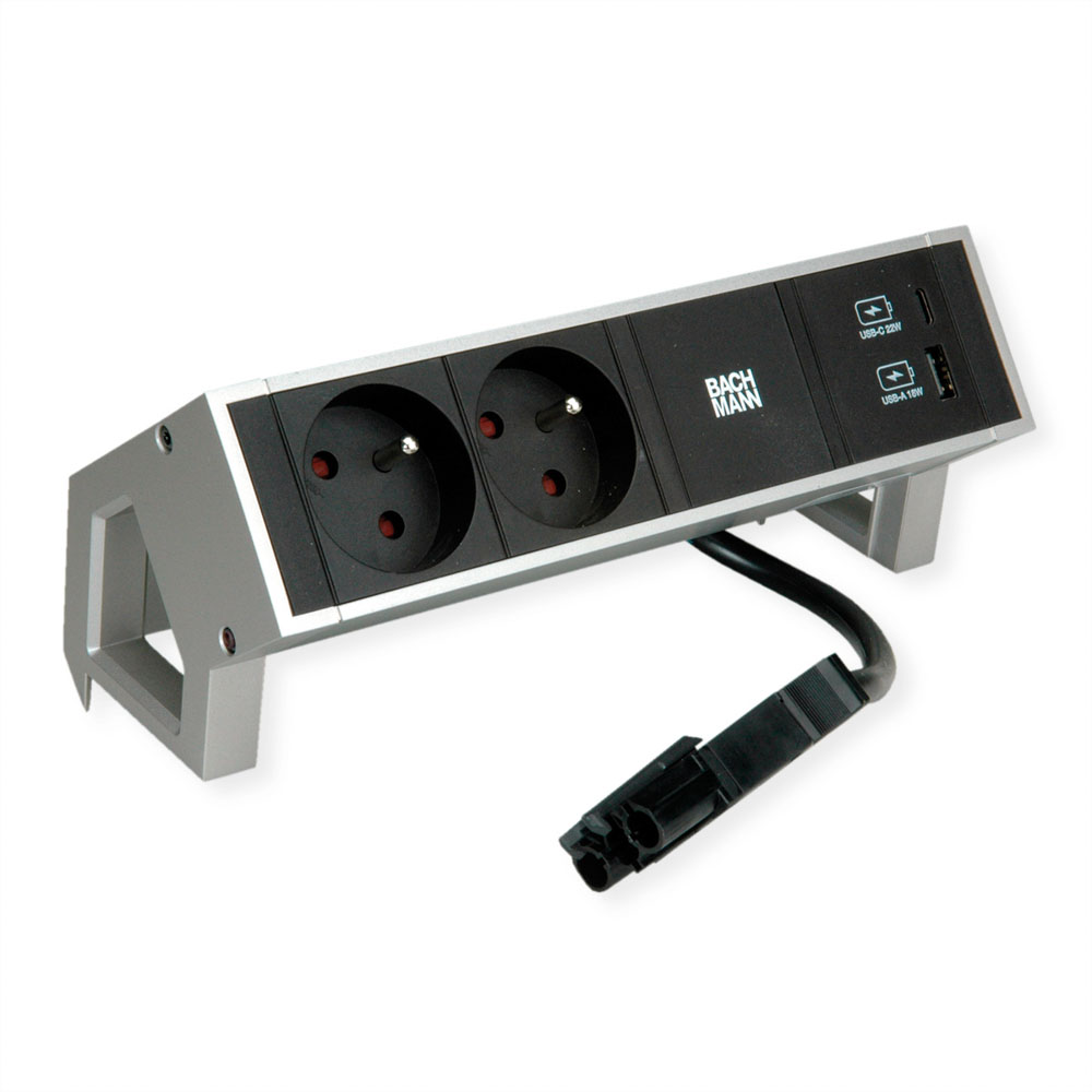 DESK2 2xUTE 1xUSB A/C 22W 0,2m GST18 INOX