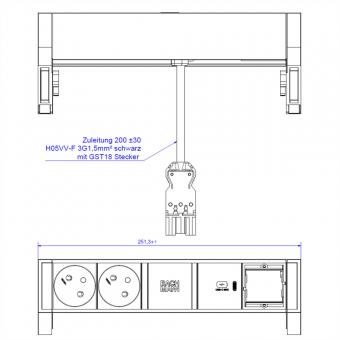 DESK2 2xUTE 1xUSB C 30W 1xCM 0,2m GST18 RAL9005