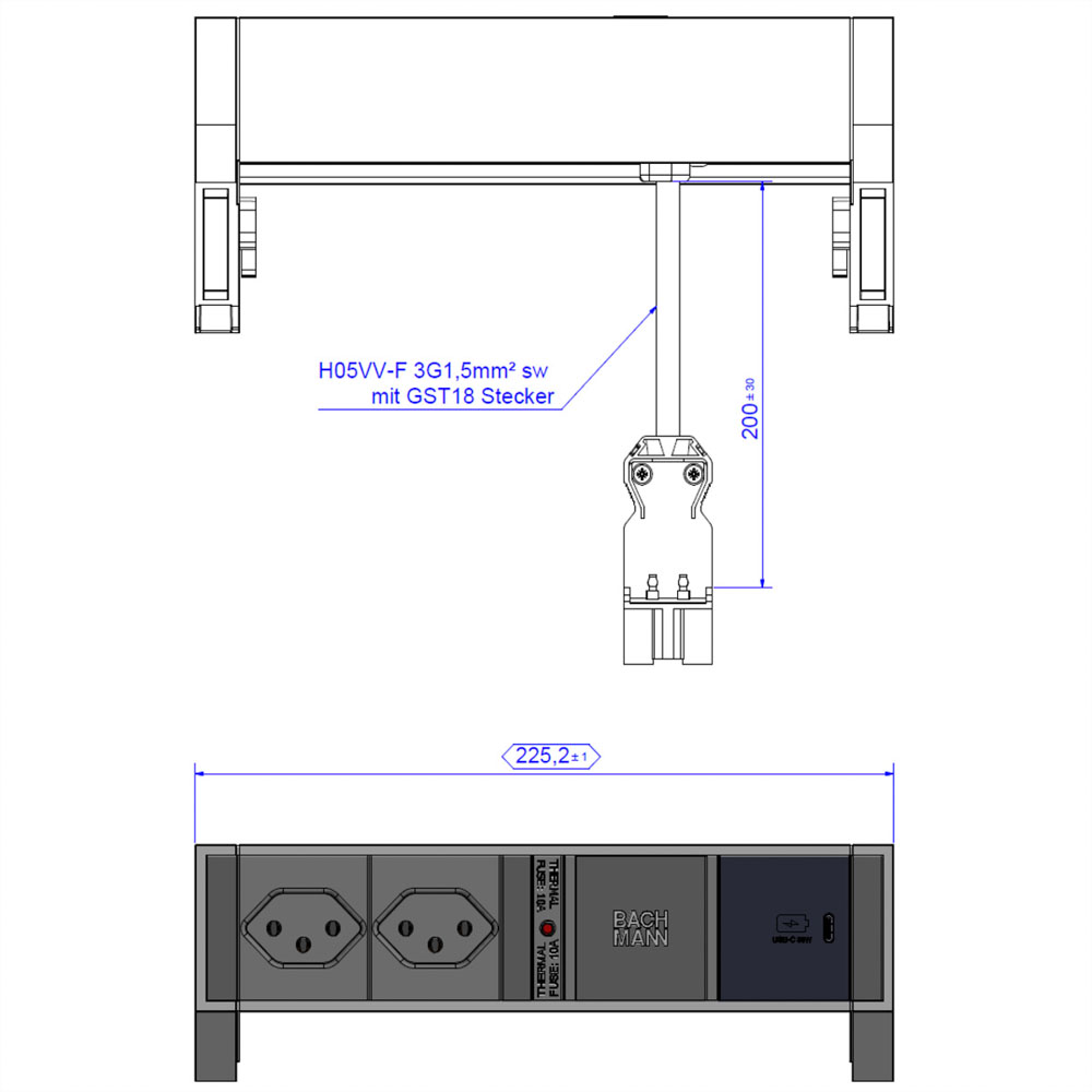 DESK2 ALU BLACK 2xCH T13, 1xUSB C 30W 0,2m GST18 Schweiz