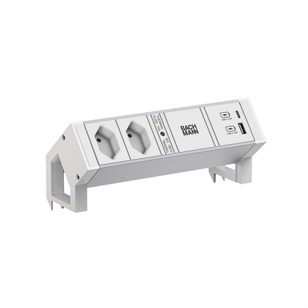DESK2 ALU WHITE 2xCH 0° 1xUSB A/C 22W 0,2m GST18