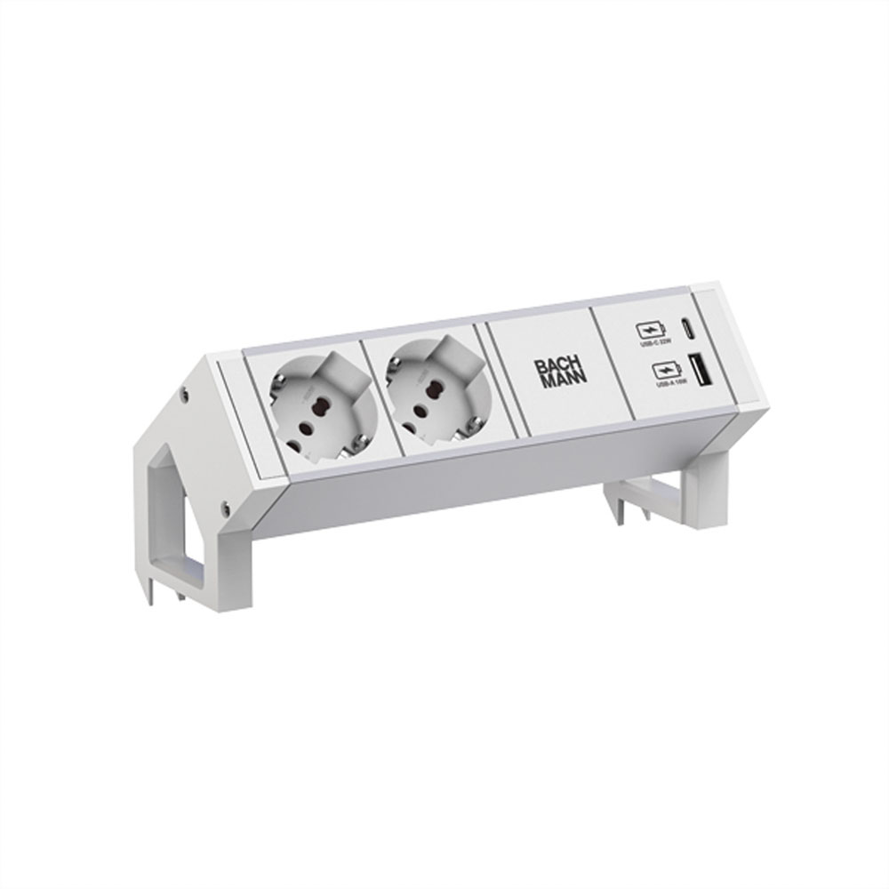 DESK2 ALU WHITE 2xP40 1xUSB A/C 22W 0,2m GST18
