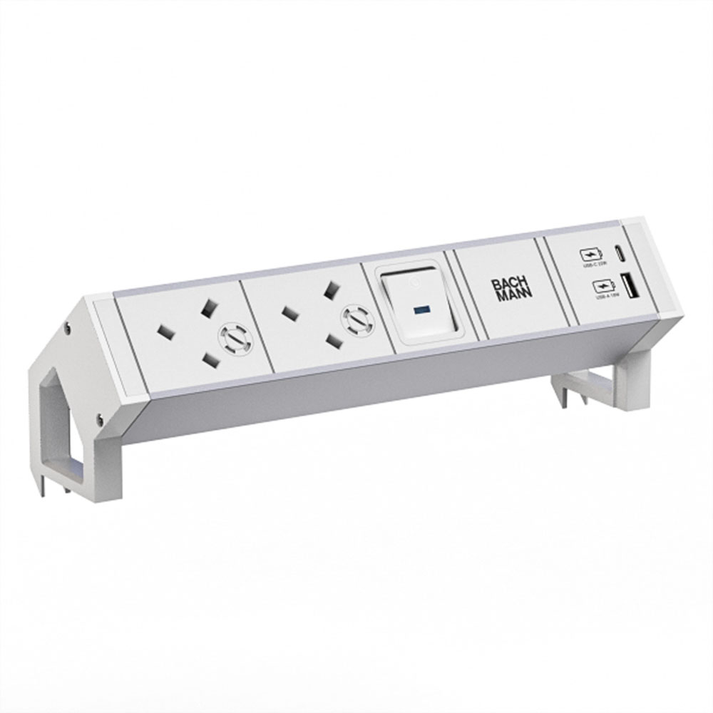 DESK2 ALU WHITE 2xUK, 1xUSB A/C 22W 1xSchalter 0,2m