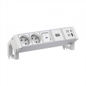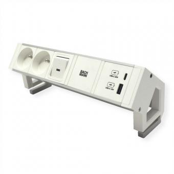 DESK2 ALU WHITE 2xUTE 1xUSB A/C 22W 1xSchalter 0,2m