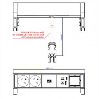 DESK2 white 2xUTE 1xCM 1xUSB A/C 22W 0,2m GST18