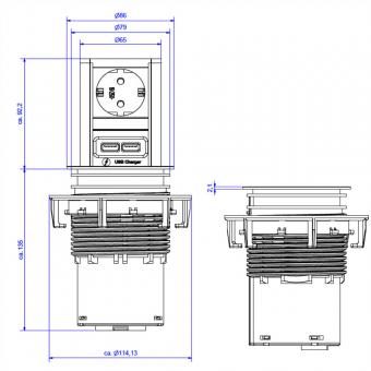 ELEVATOR 1xCEE7/3 USB Charger, Strom 2,0m CEE7/7