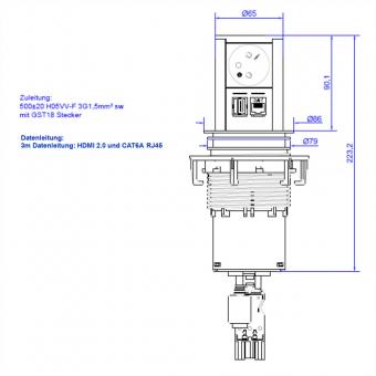 ELEVATOR 1xUTE 1xHDMI 1xCAT6A 90° 0,5m GST18