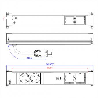 POWER FRAME 2xCEE7/3, 1xUSB C Charger 2xCM 0,2m GST18