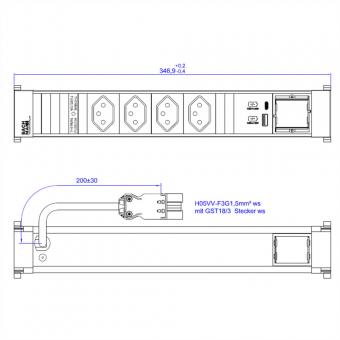 POWER FRAME 4xCH 0° 1xCM 1xUSB A/C 22W 0,2m GST18