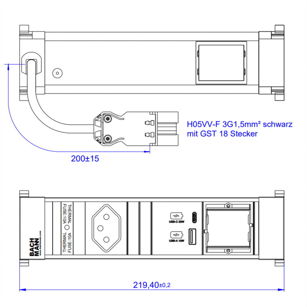 POWER FRAME S 1xCH 1xCM, 1xUSB A&C 22W 0,2m GST18 Schweiz