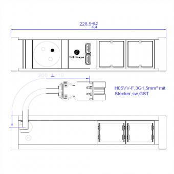 VENID 1xUTE 1xUSB Charger 2xCM 0,2m GST18