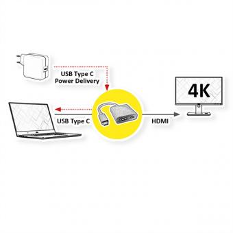 Adaptateur Type C - HDMI, + 1x type C PD, M/F