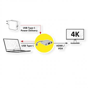 Adaptateur Type C - VGA / HDMI / C (PD), M/F