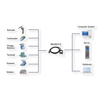 EX-2311-2 USB 2.0 C - mâle vers 1x série RS-232, LED