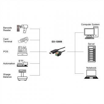 EXSYS EX-13009 Câble USB vers série 1S RS-485, bloc terminal avec bouton-poussoir, 1.0m (chipset FTDI)